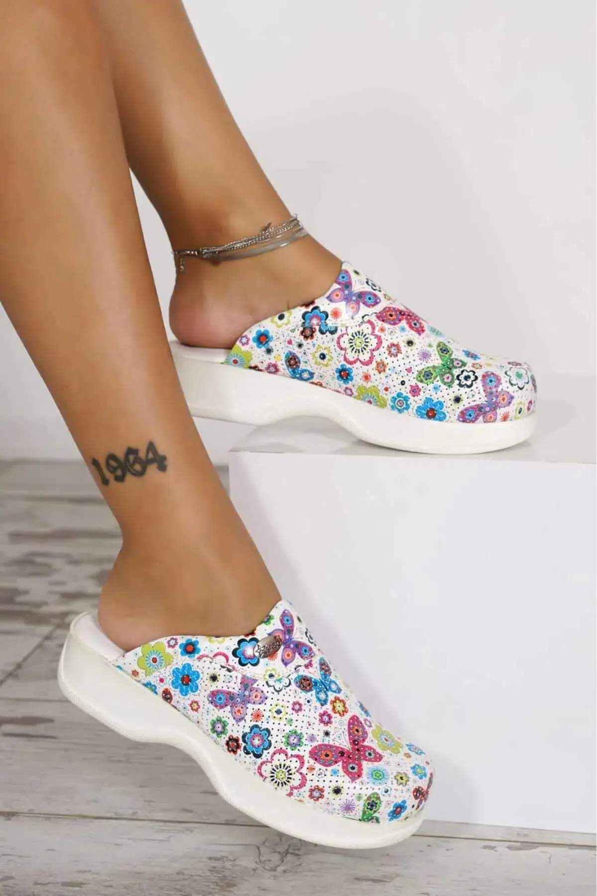 EtiketlerKadın Çiçekli Ortopedik Sabo Terlik Doktor Terliği Hemşire Terliği Aşçı Terliği
